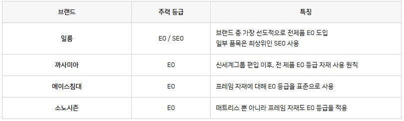 주요 가구 브랜드별 현황을 알려드릴게요.