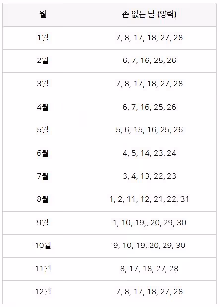 손 없는 날은 이런 ‘손’이 활동하지 않는 날로,