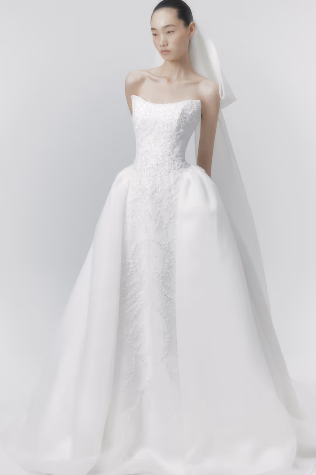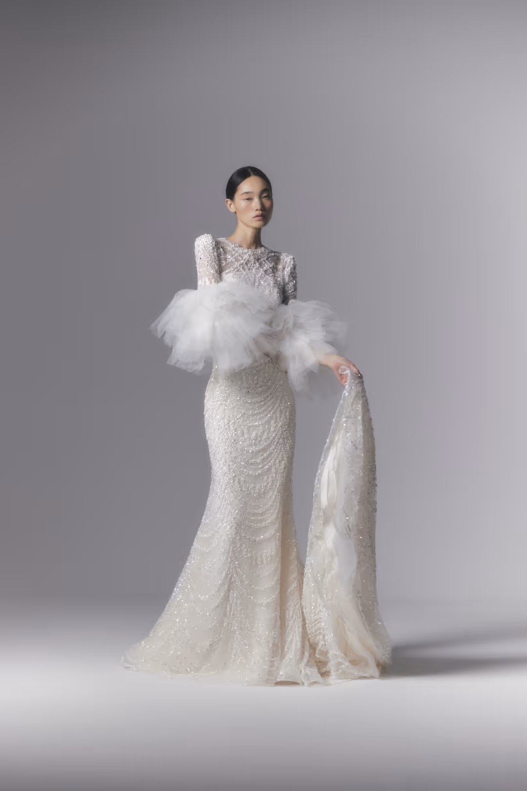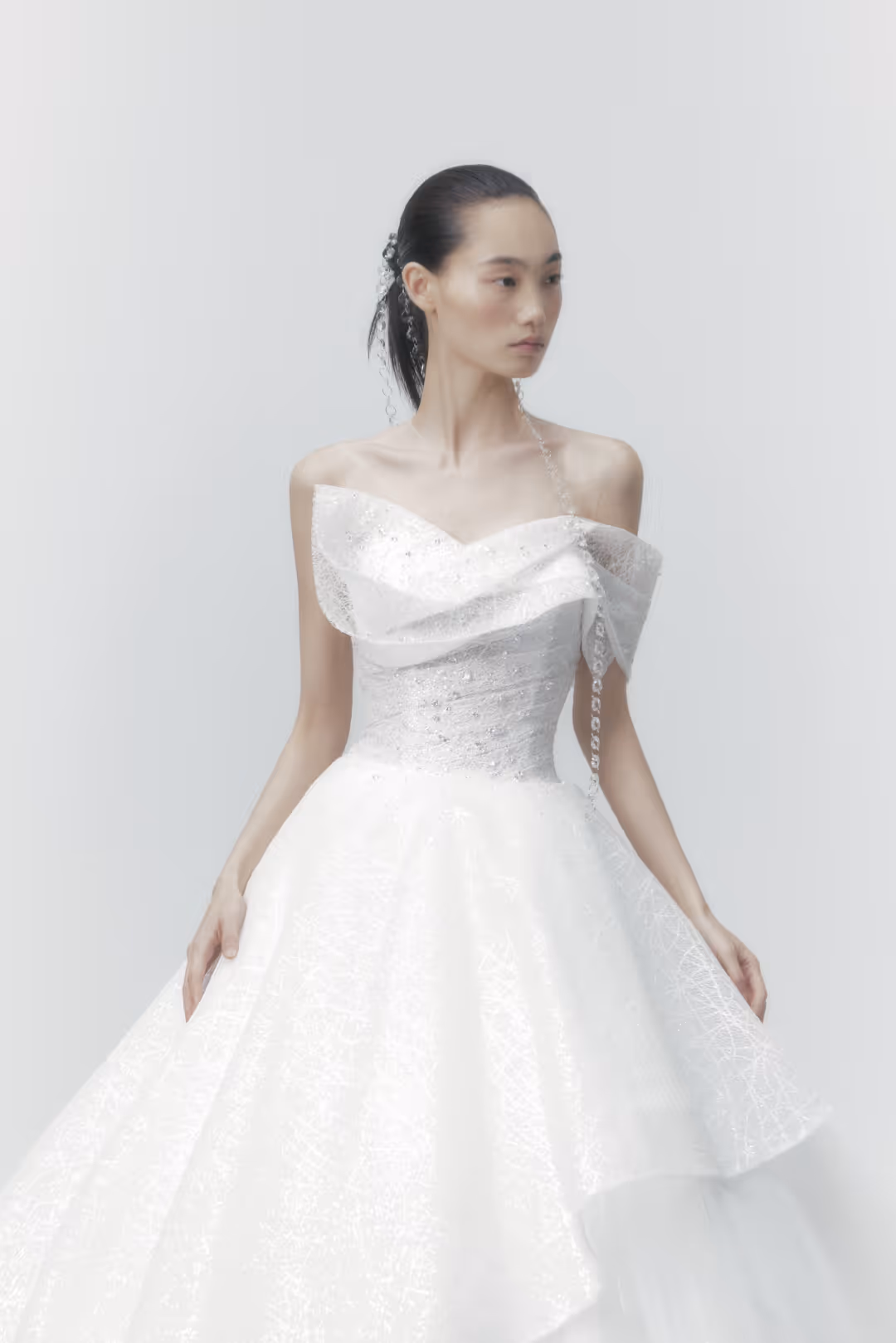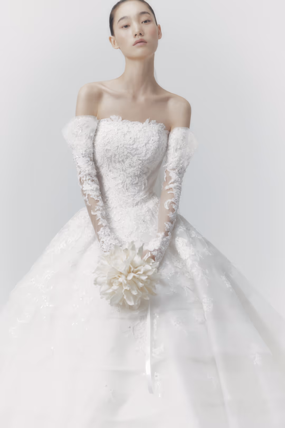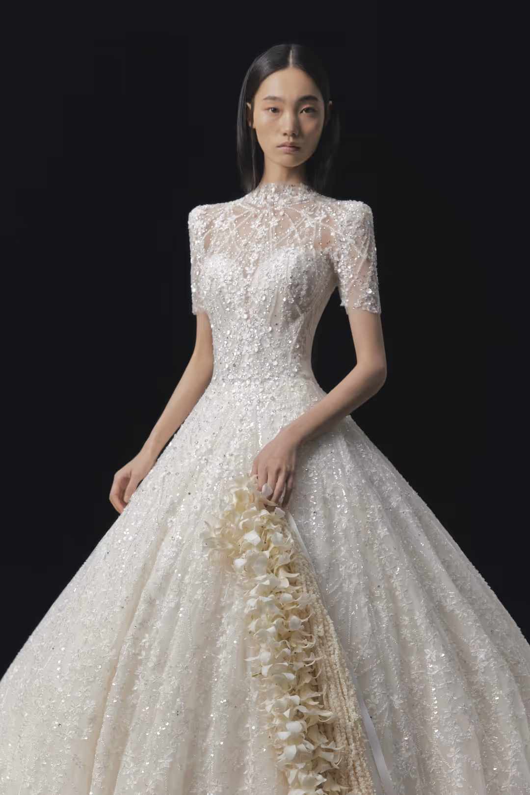 너무 과한 비즈보다는 맑은 비즈가 은은하게 빛 나는 드레스를 원했어요.