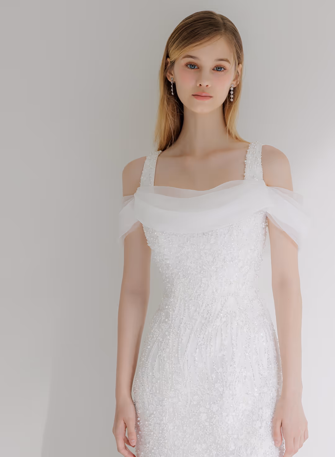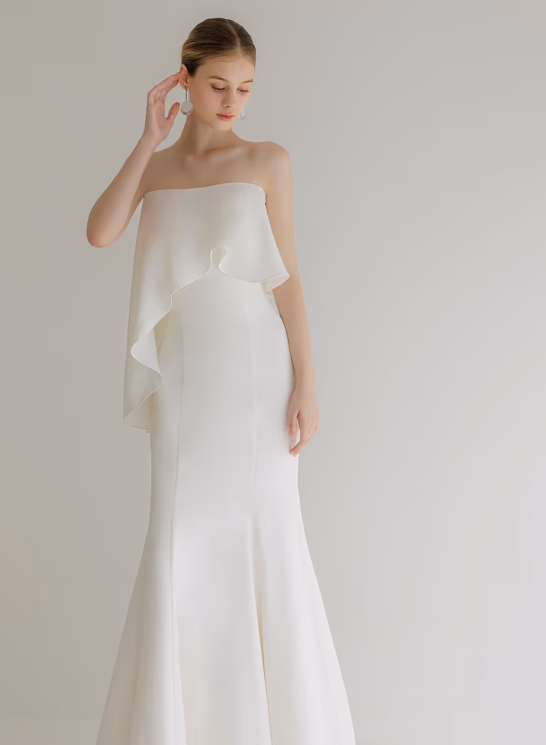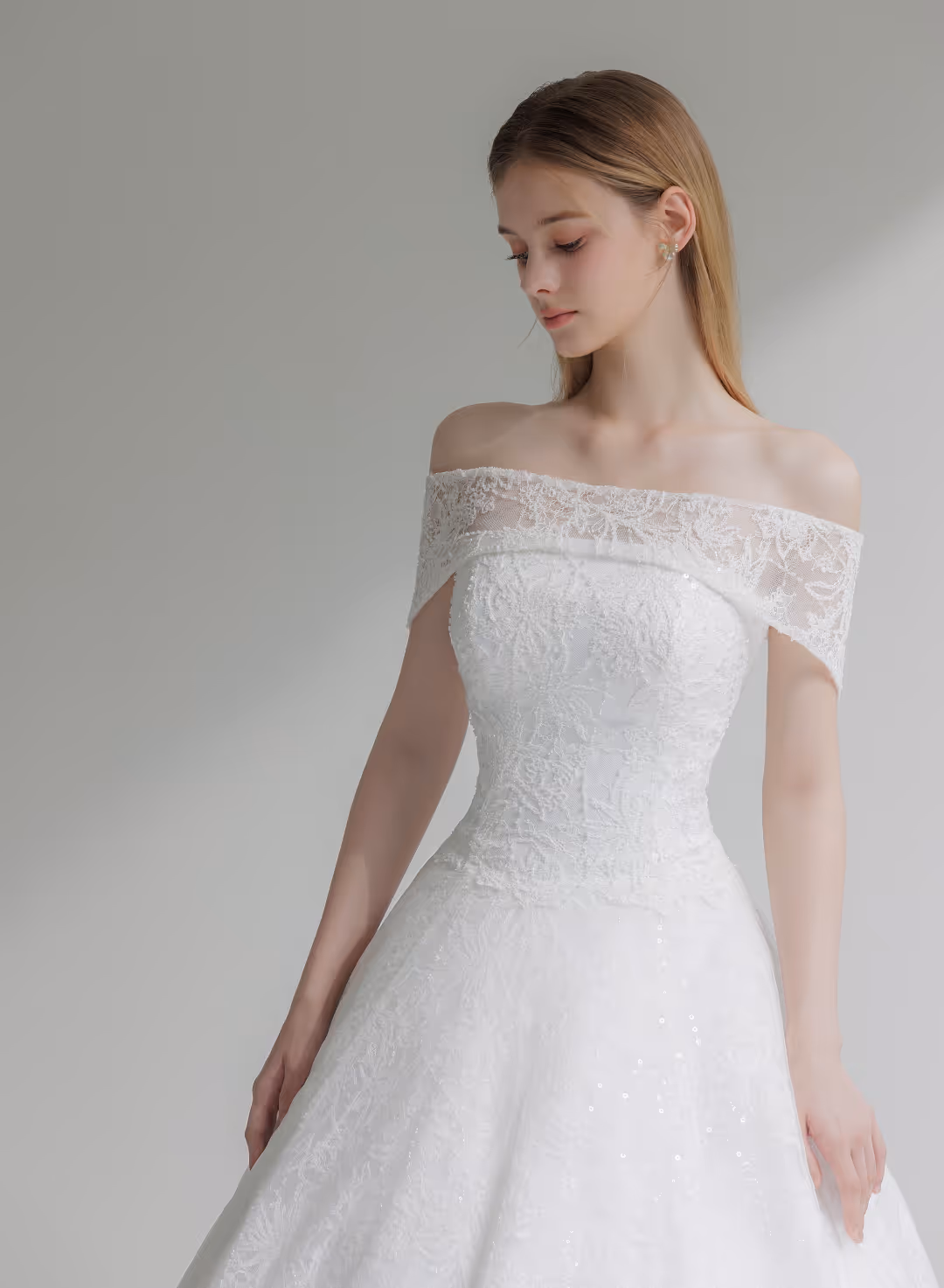 제가 선택한드레스는 오간자실크 오프숄더 드레스인데용