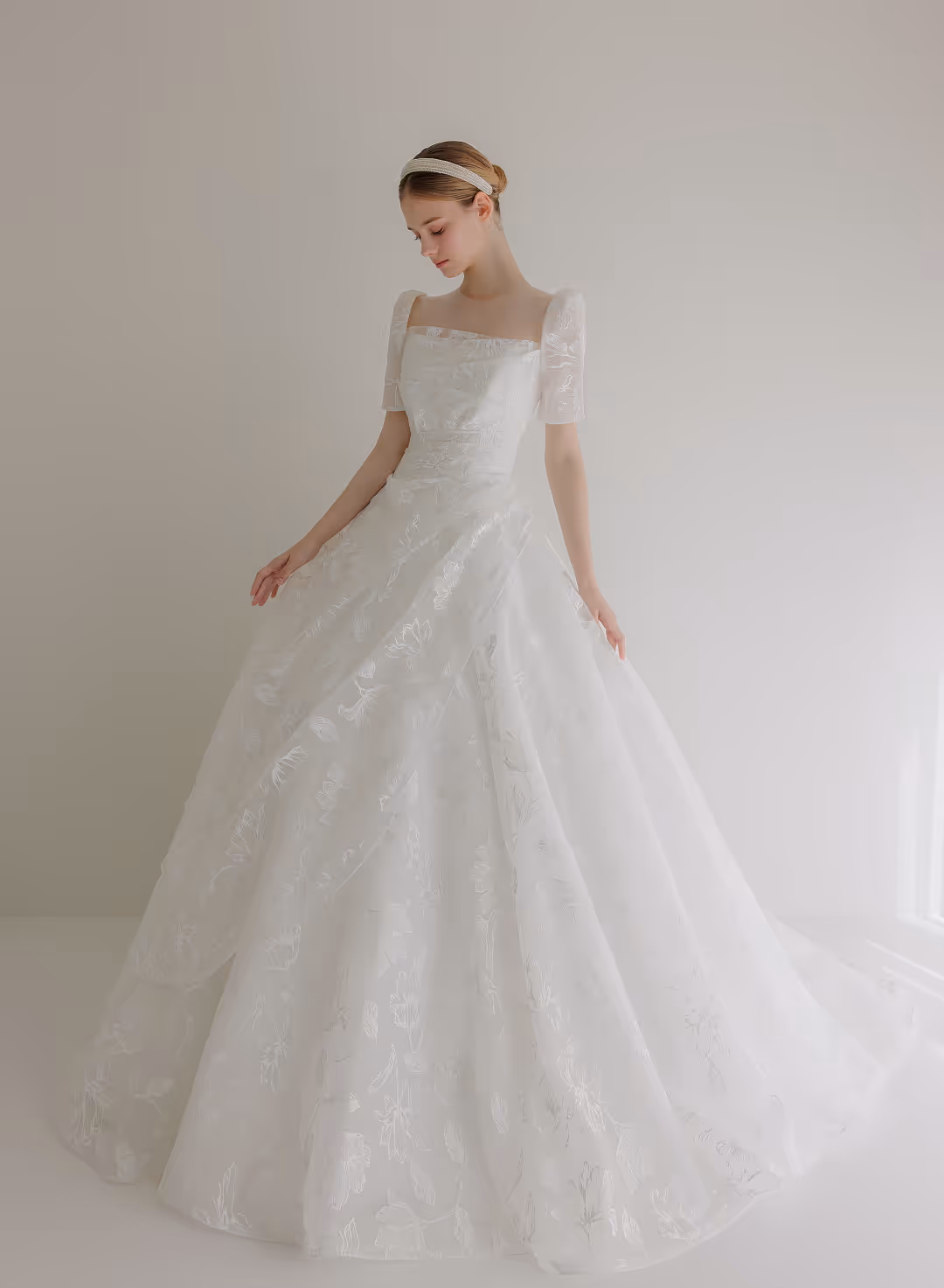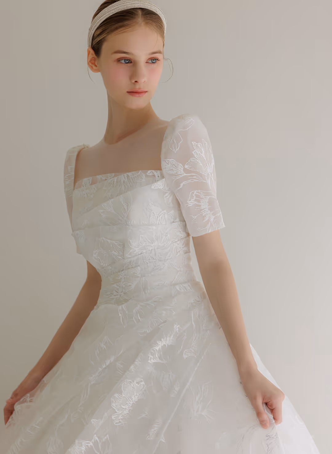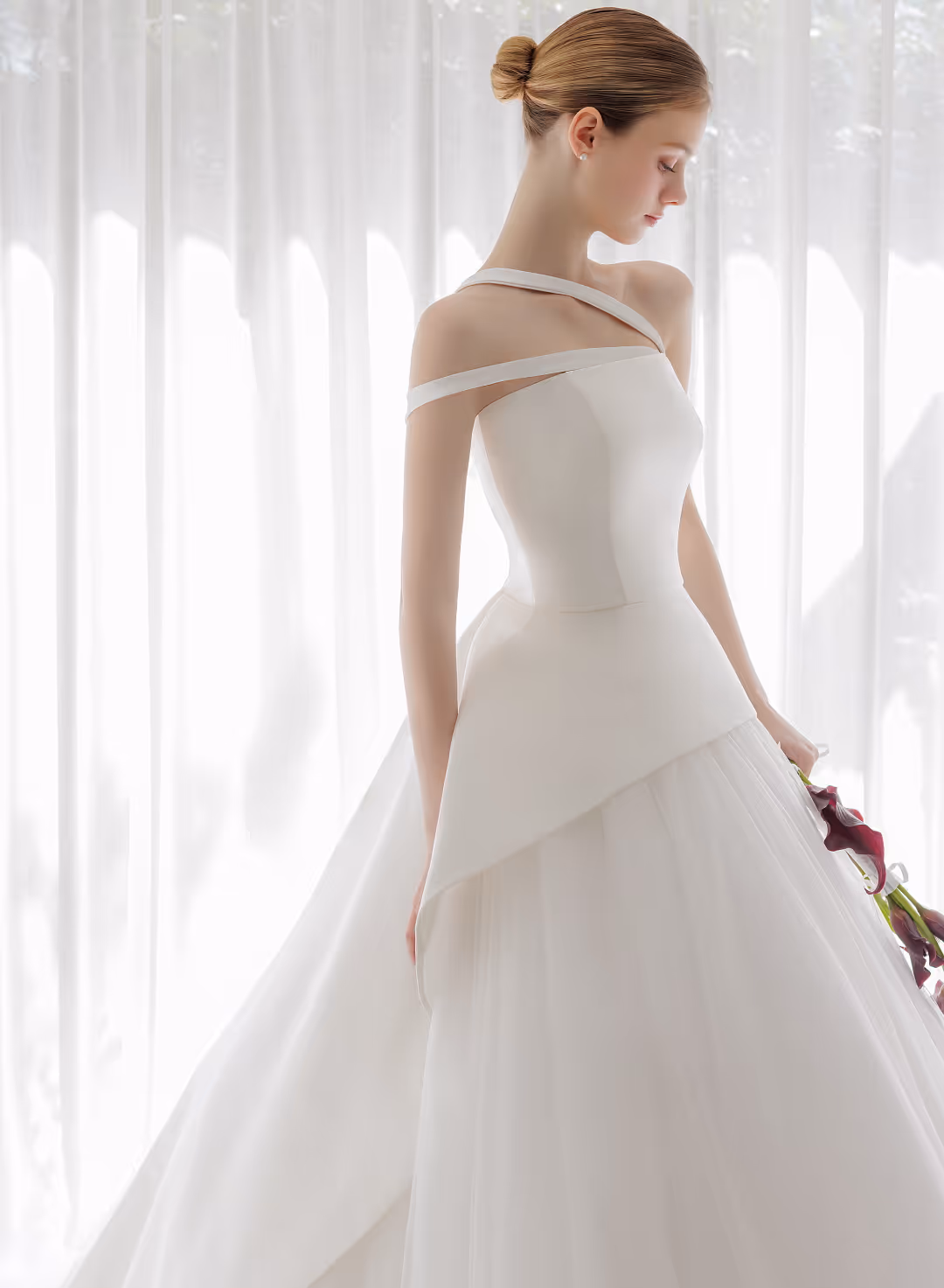 제가 선택한드레스는 오간자실크 오프숄더 드레스인데용