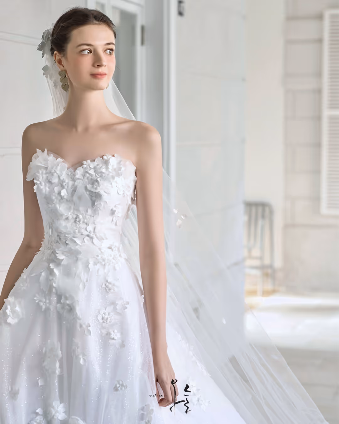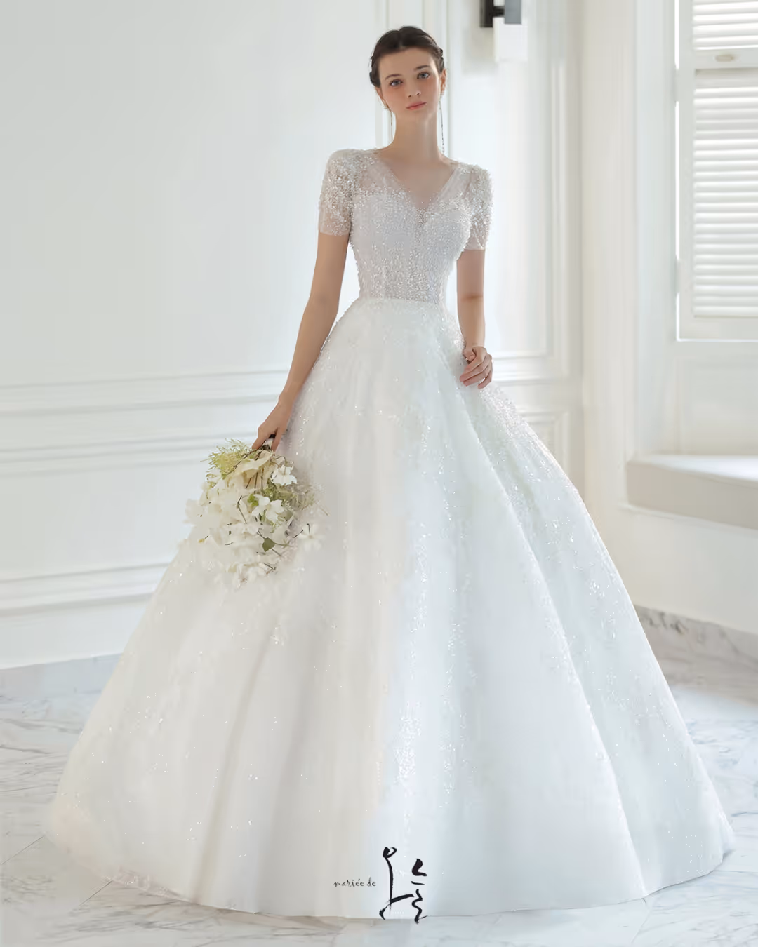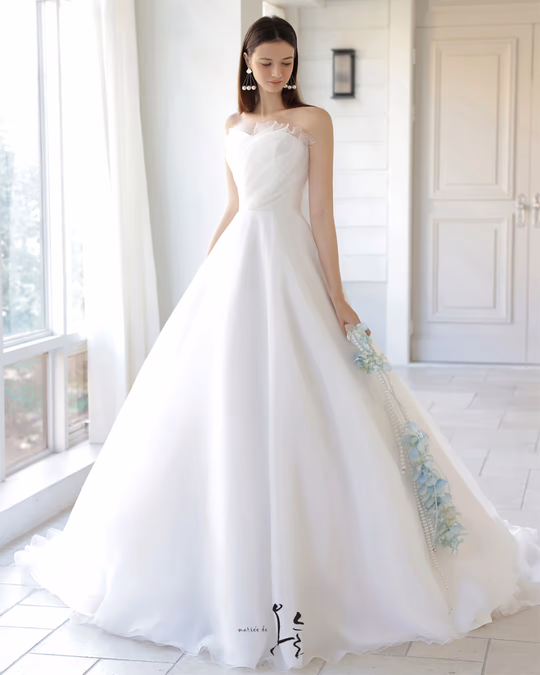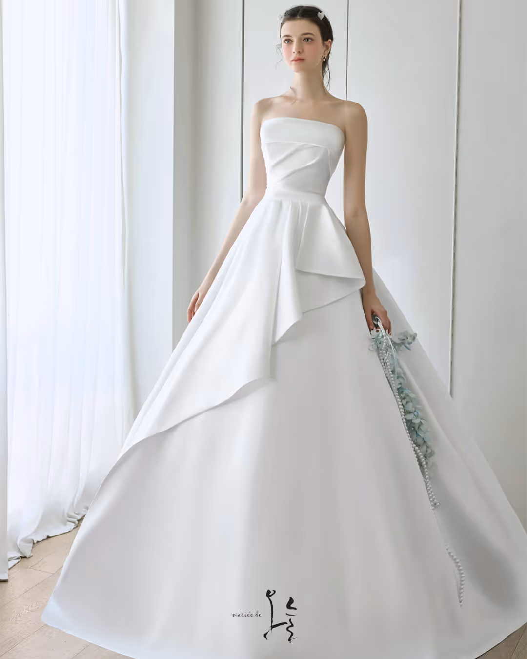 마리에드오늘은 수입과 자체제작을 통해 다양한 드레스를 선보입니다. 여성스러운 라인과 맑고 깨끗한 분위기의 드레스로, 우아하게 빛나는 오늘을 선물합니다.