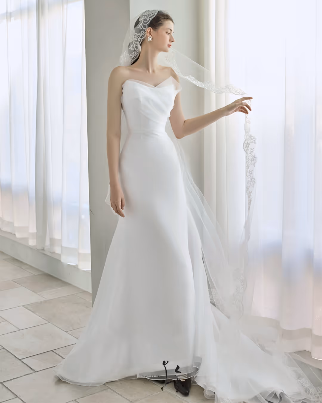 베일도 제가 원하는 느낌으로 잘 도착해서 심플한 드레스 위로 반짝이는 투베일 포인트로 매치했습니다
