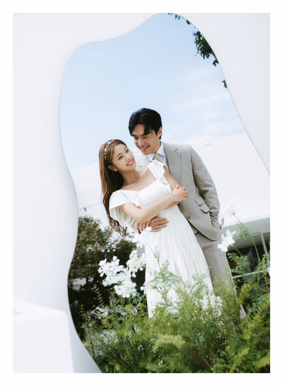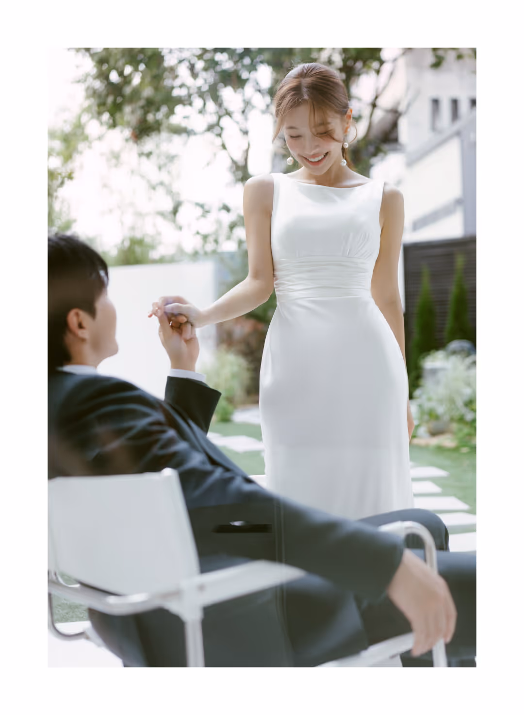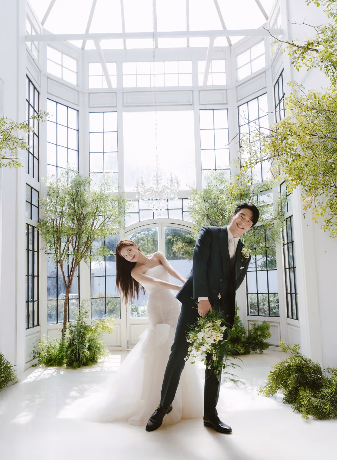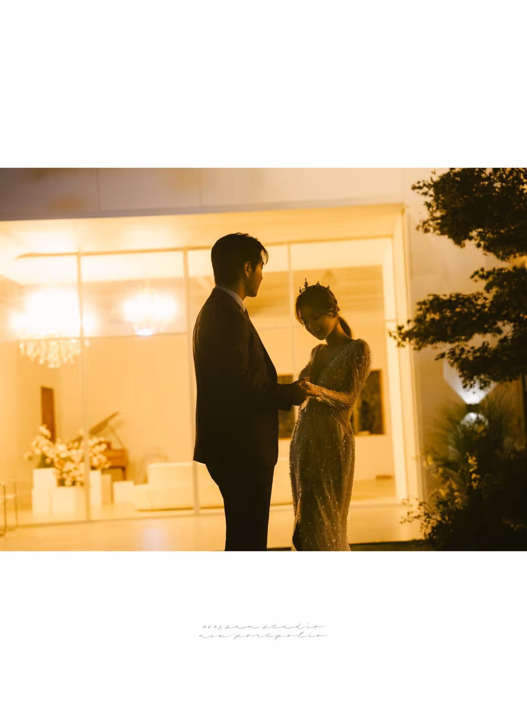 •낮과 밤의 정원을 배경으로 화사하고 로맨틱한 분위기를 담은 웨딩사진