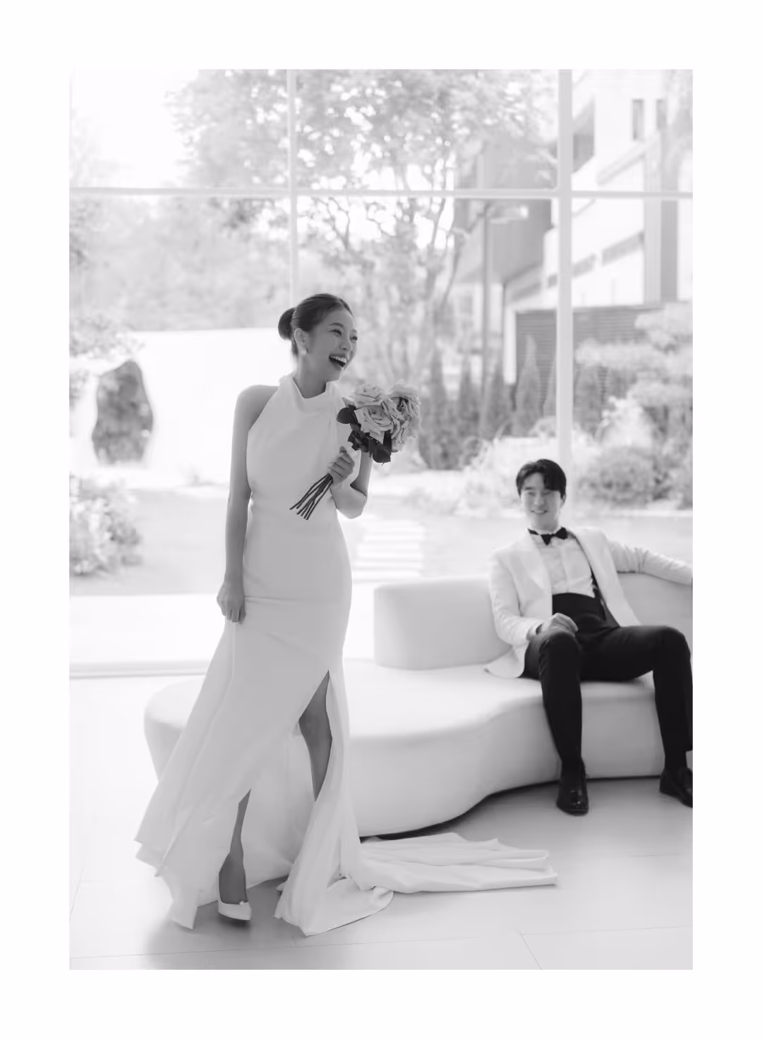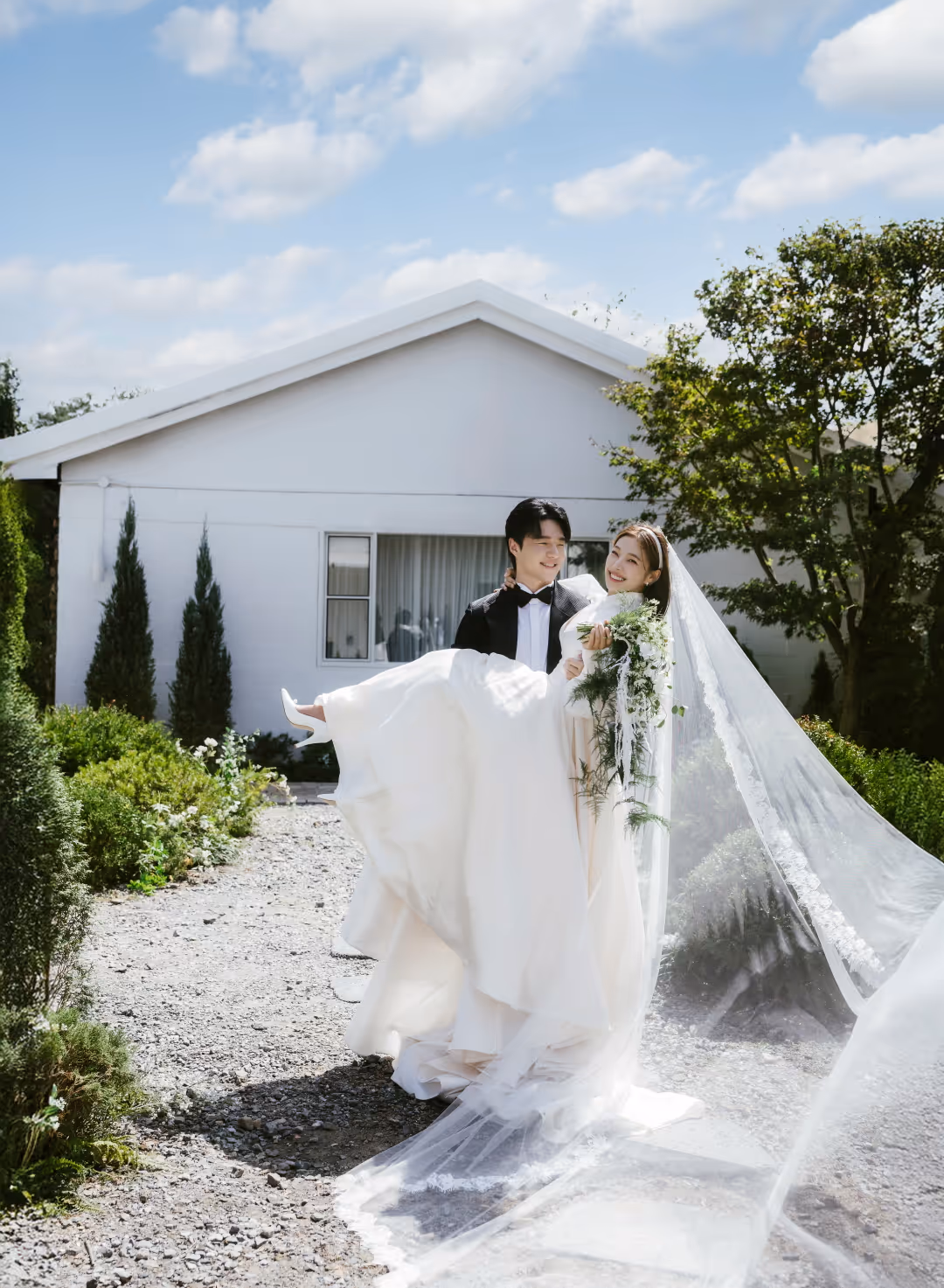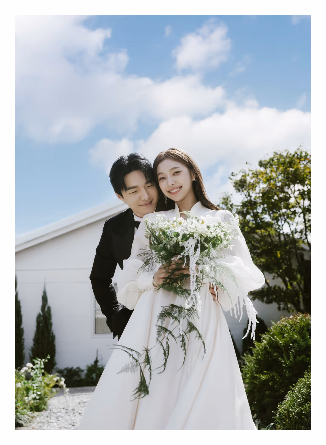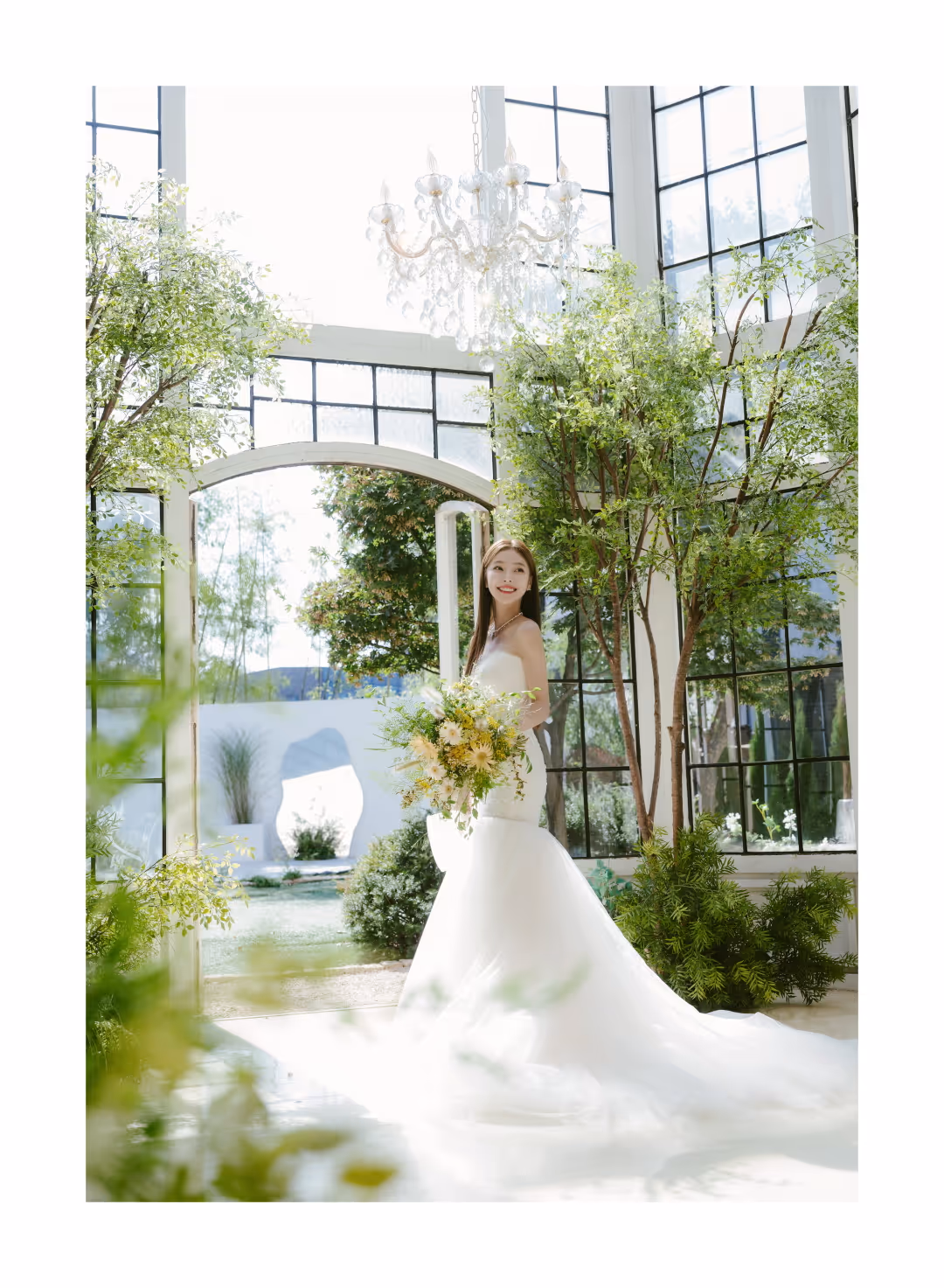 •낮과 밤의 정원을 배경으로 화사하고 로맨틱한 분위기를 담은 웨딩사진