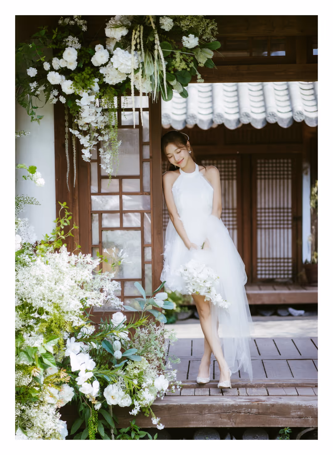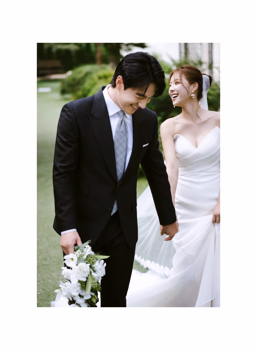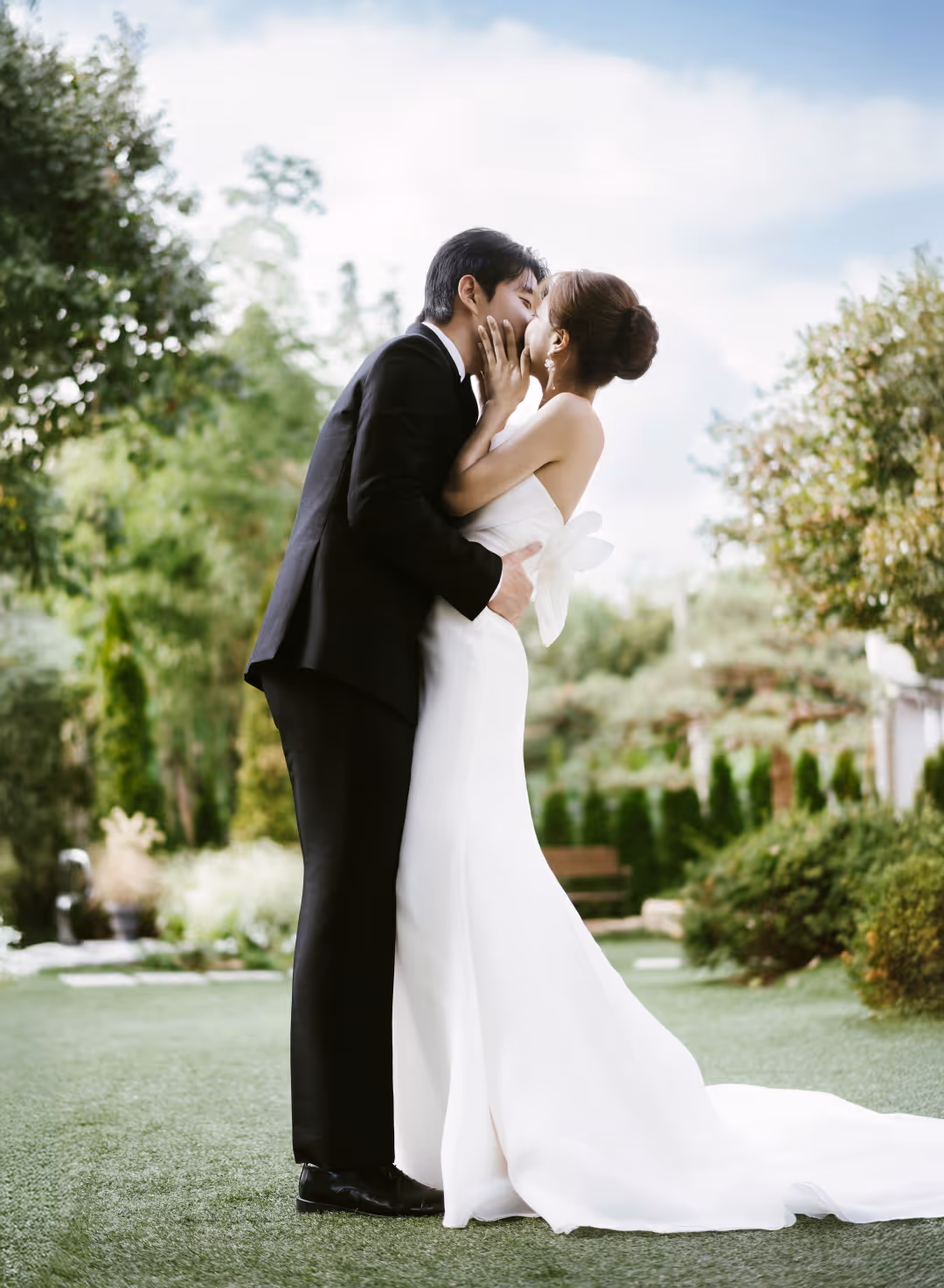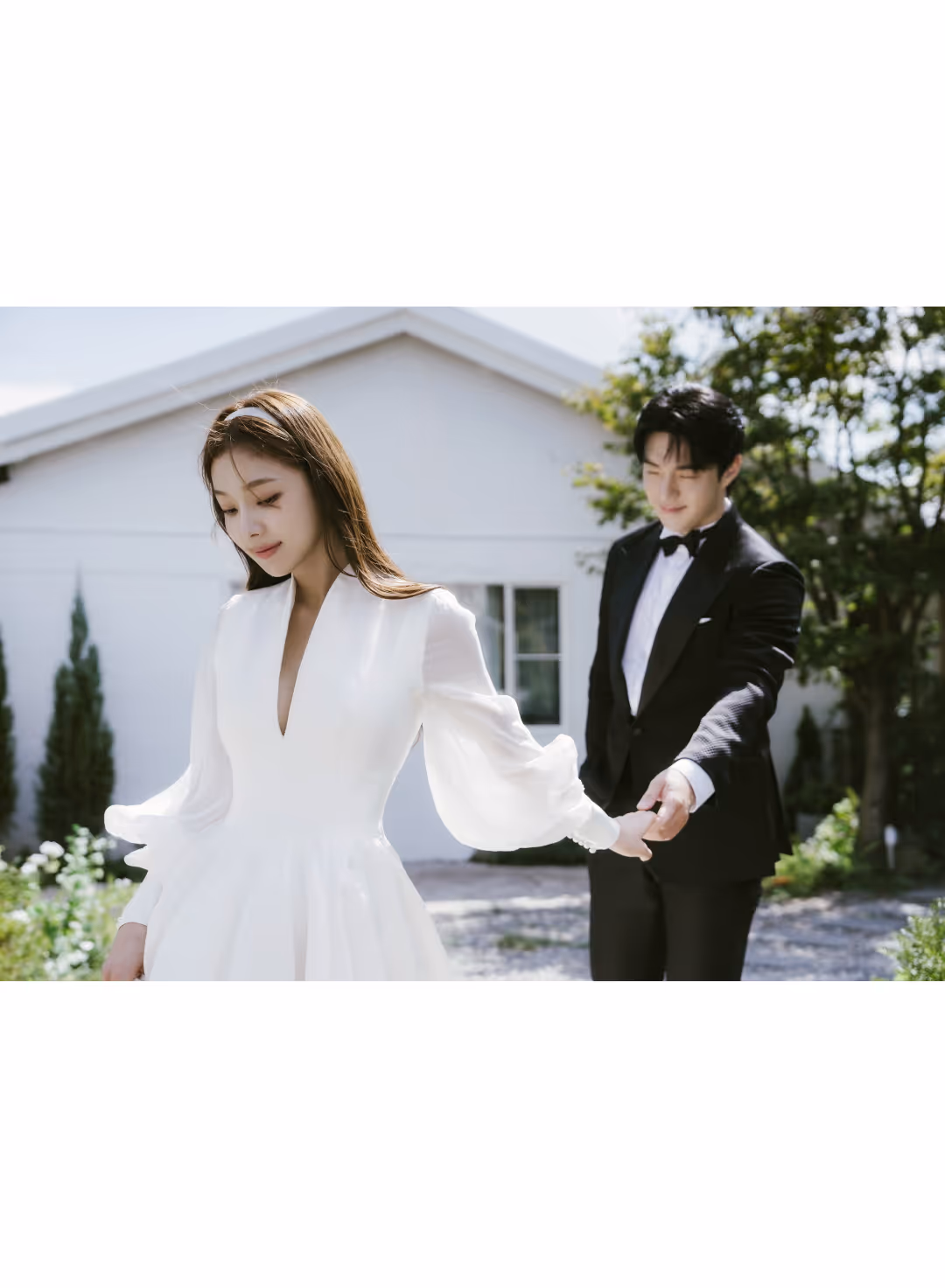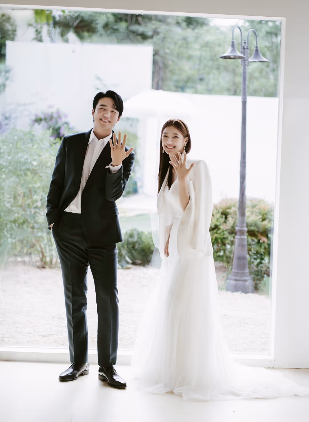 •낮과 밤의 정원을 배경으로 화사하고 로맨틱한 분위기를 담은 웨딩사진