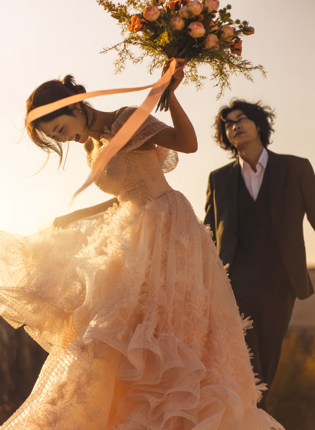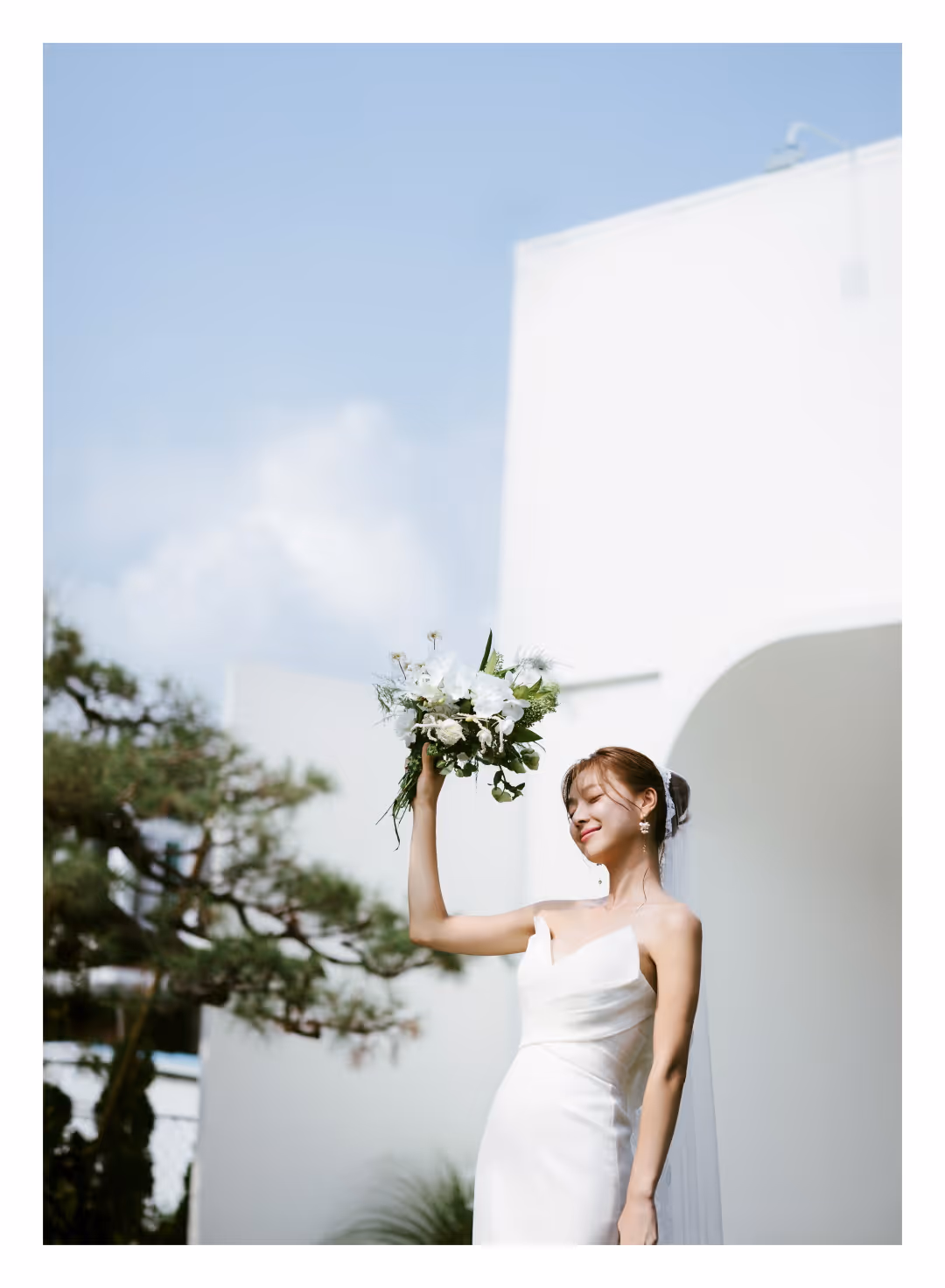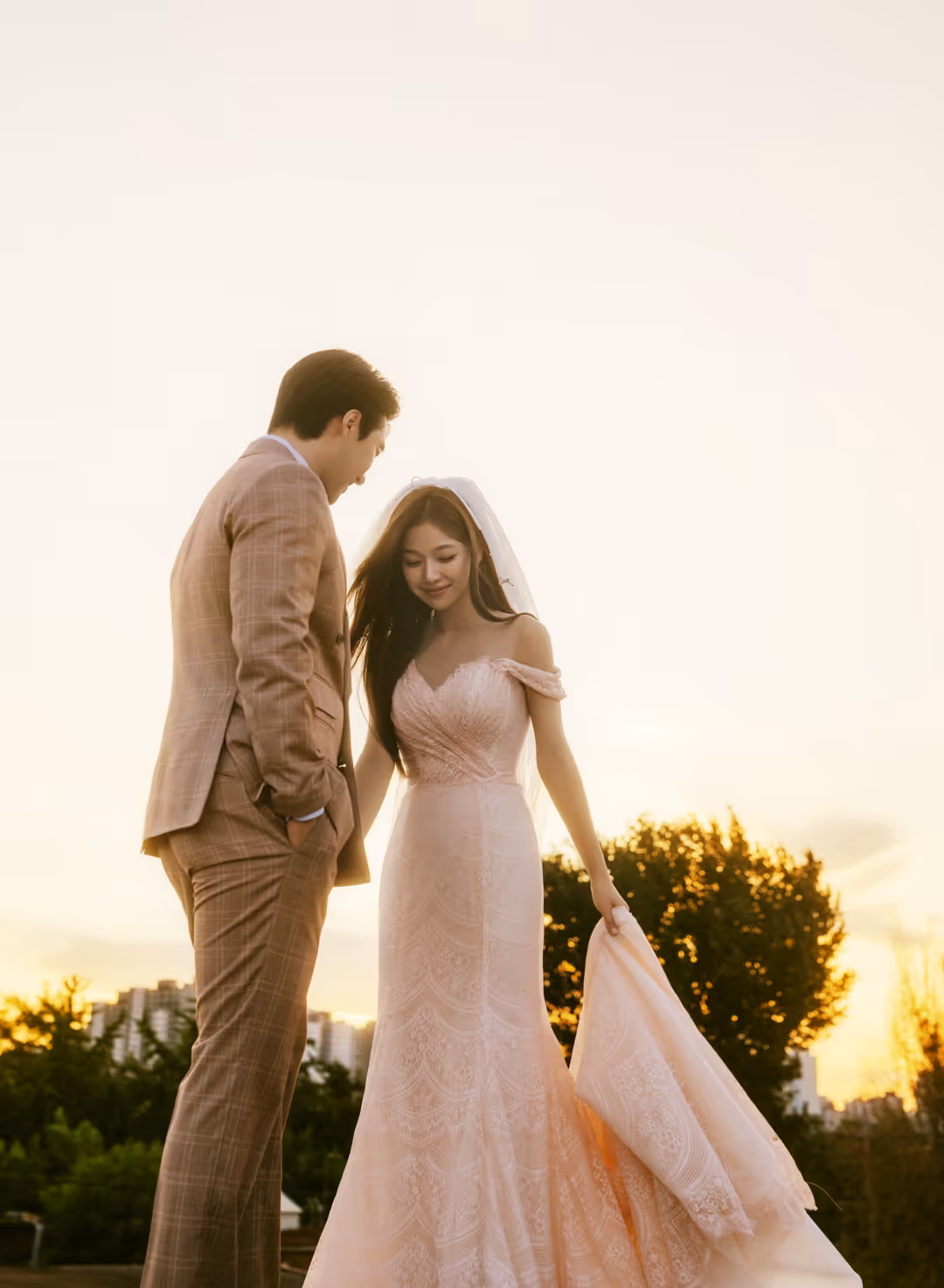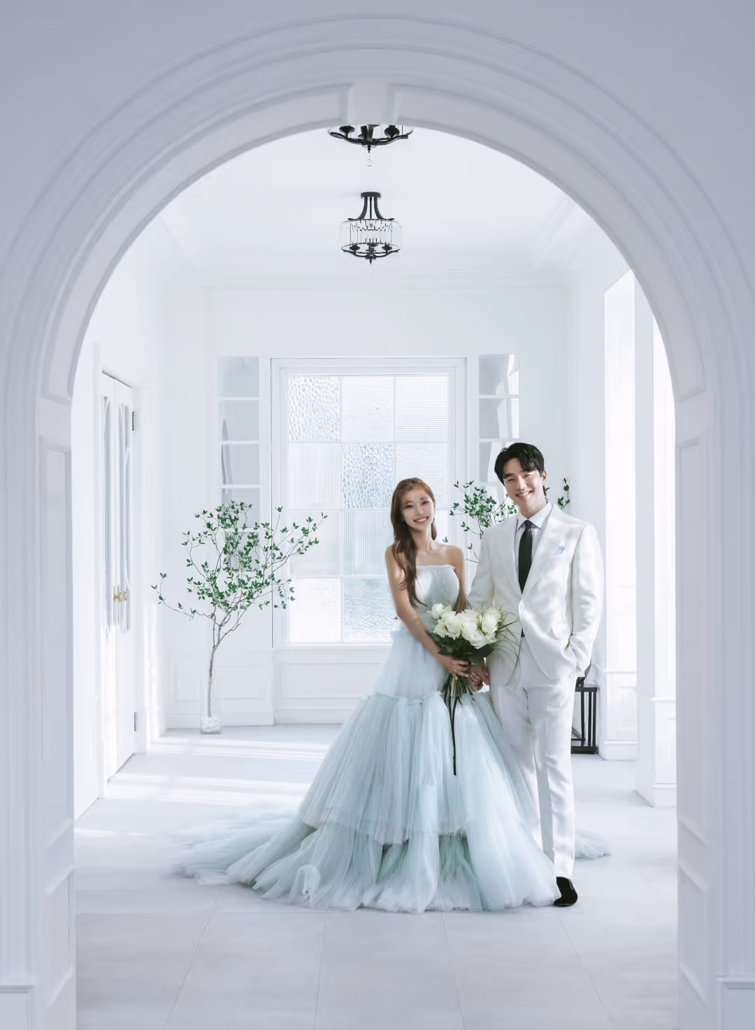 •낮과 밤의 정원을 배경으로 화사하고 로맨틱한 분위기를 담은 웨딩사진