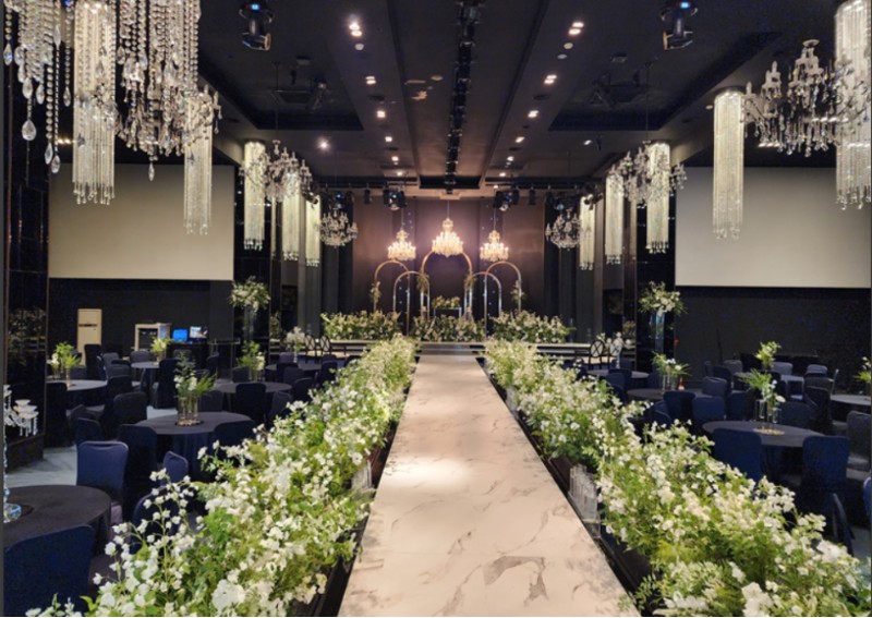 4개의 다양한 컨셉의 홀 가지고 있음. 주차 1000대 동시수용가능 2020.08월부터 3층홀 연회장으로 변경. 보다 여유로운 연회 분위기 형성.