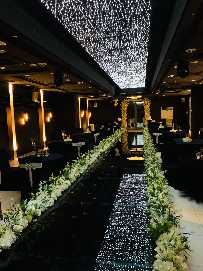 스모그효과와 조명이 신부한테 집중시켜주더라구요 블랙홀이여서 천장조명 반짝반짝 이뻤습니다