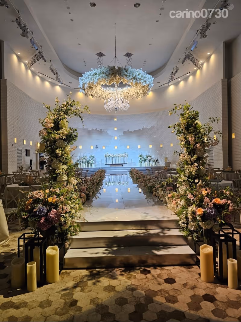 입구 플라워 장식도 그렇고 조명 연출, 음향까지 전체적인 조화가 잘 어우러지던 홀이라 맘에들었어요.